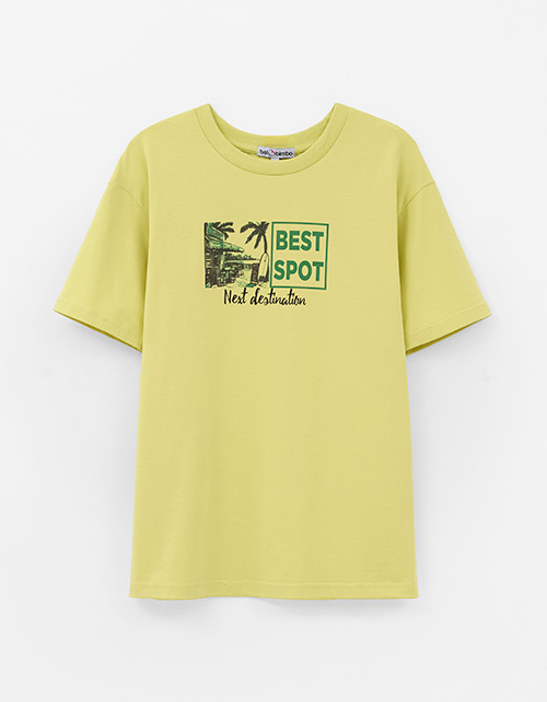 Фисташковая футболка из мягкого хлопка создаёт лёгкий образ. Прямой крой комфортен в движении. Аккуратный принт, выполненный цифровым способом и термотрансферной плёнкой, добавляет выразительный акцент и поддерживает настроение коллекции.