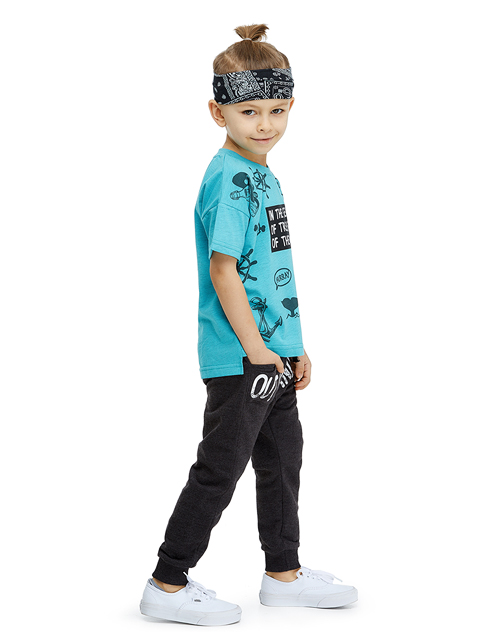 Невероятно стильная футболка с принтом на любимую всеми мальчишками тему пиратов. "Морской" принт с изображением сокровищ, якоря, штурвала и яркая надпись помогут ребенку почувствовать себя настоящим покорителем морских просторов