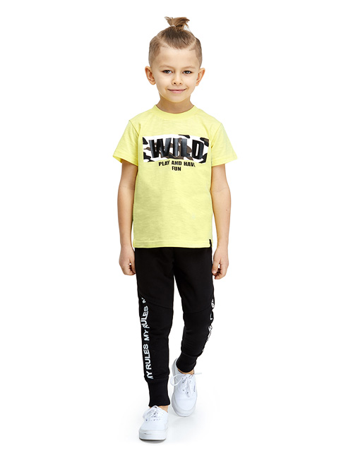 Яркая футболка просто необходима стильному и модному мальчику! Оригинальный привлекательный принт на актуальную тематику милитари и веселые надписи сделают образ эффектным и современным. Приятная натуральная ткань позволит наслаждаться комфортом весь день