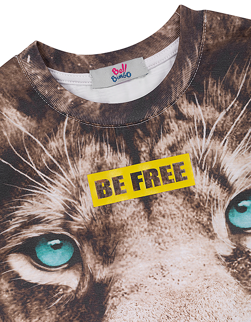 Стильная футболка оверсайз с изображением льва станет незаменимой частью гардероба маленького модника. Яркий природный принт и надпись "Be free" смотрятся оригинально и актуально. Мягкая натуральная ткань гарантирует комфорт и удобство на весь день