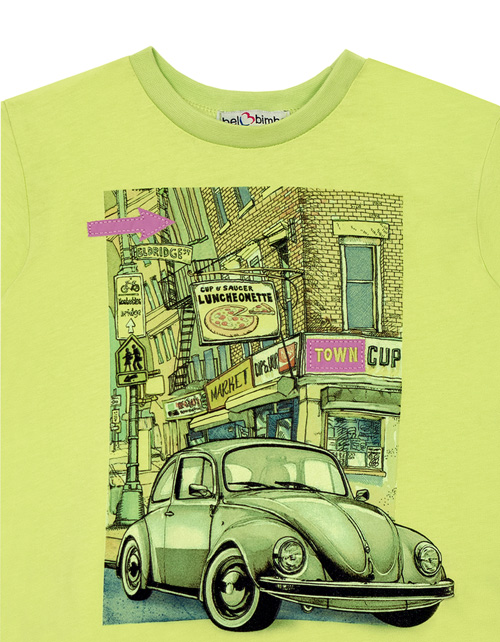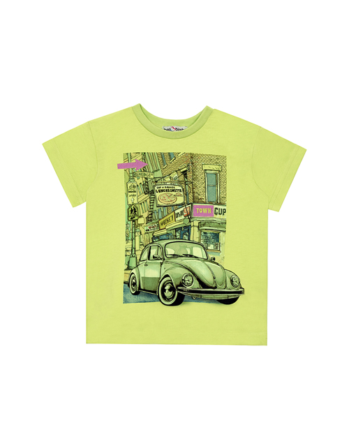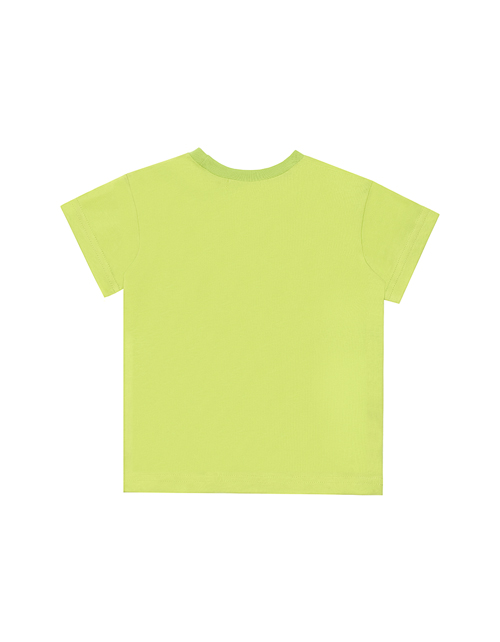 Салатовая футболка для мальчика с круглой горловиной и принтом в стилистике капсулы "Стильный маршрут".