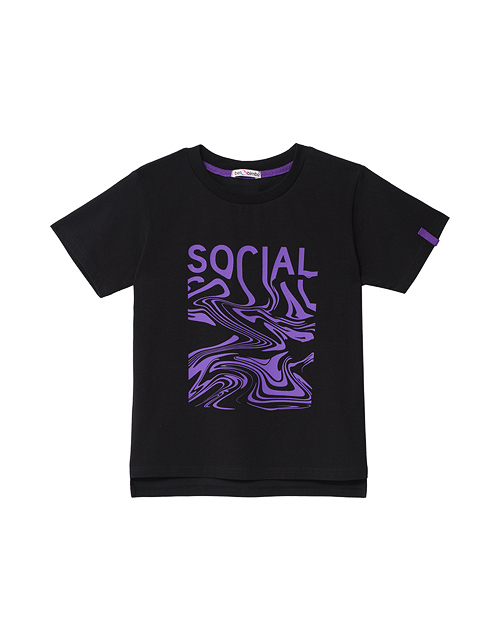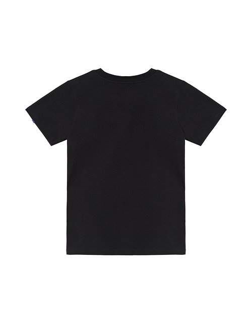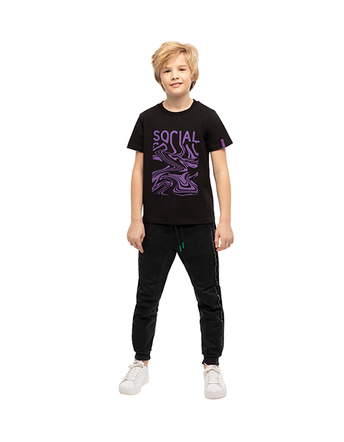 Черная футболка для мальчика с круглым вырезом горловины из рибаны. Дизайнерское оформление в стилистике капсулы "Мегаполис".