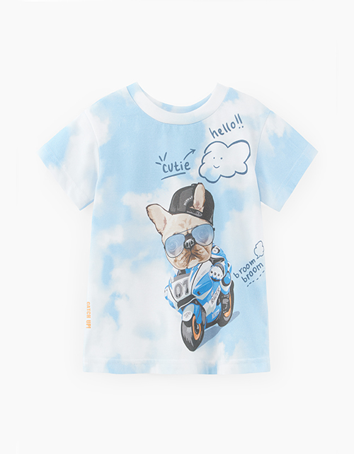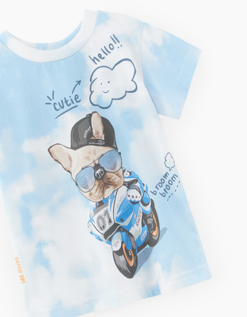 Стильная футболка с принтом для мальчика. Модель прямого силуэта. Круглый вырез горловины. Изделие из кулирной глади.