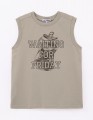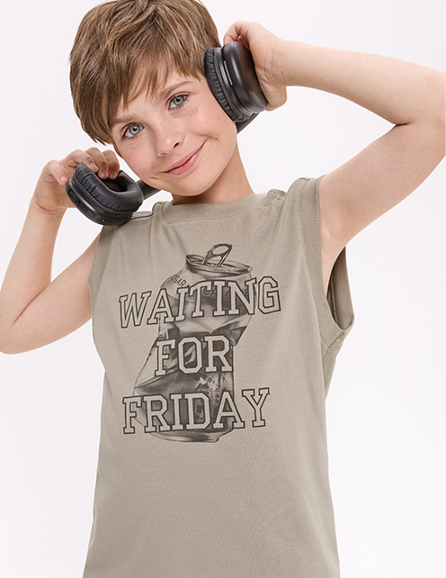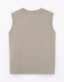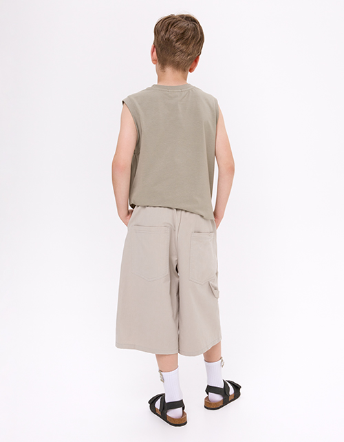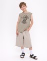 Оливковая футболка без рукавов с умеренной oversize посадкой создаёт расслабленный образ. Низкая пройма добавляет лёгкую свободу и подчёркивает стиль модели. Аккуратный цифровой рисунок вносит выразительный акцент и поддерживает настроение коллекции.