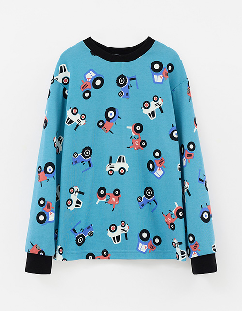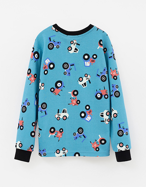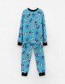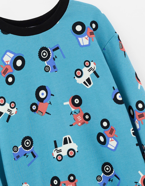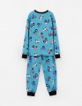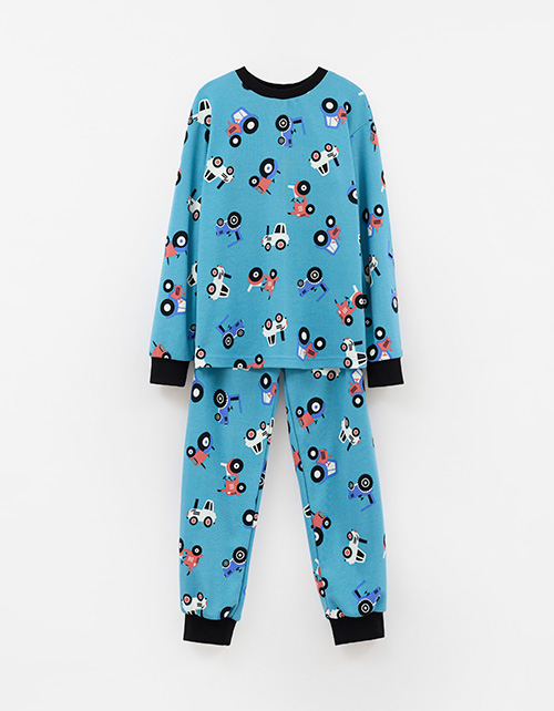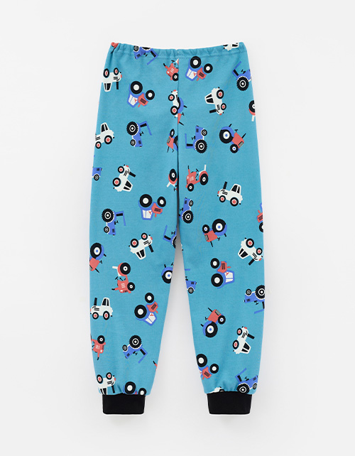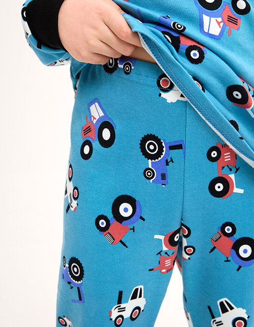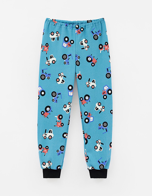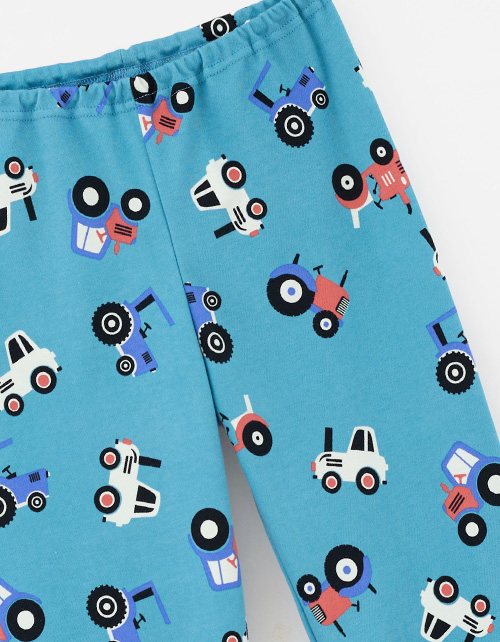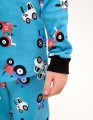 Синий пижамный комплект из хлопка для мальчика: лонгслив и брюки с изображением тракторов. Удобные манжеты, мягкая ткань и эластичная горловина обеспечивают комфорт. Лёгкий уход. Гипоаллергенная и дышащая пижама - идеальна для сна и домашних игр.