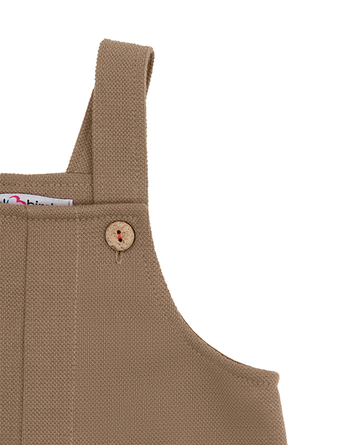 Повседневный полукомбинезон для мальчика свободного фасона. Изделие дополнено застежками на пуговицах в передней части изделия и лямками. Внизу штанин имеются подвороты.