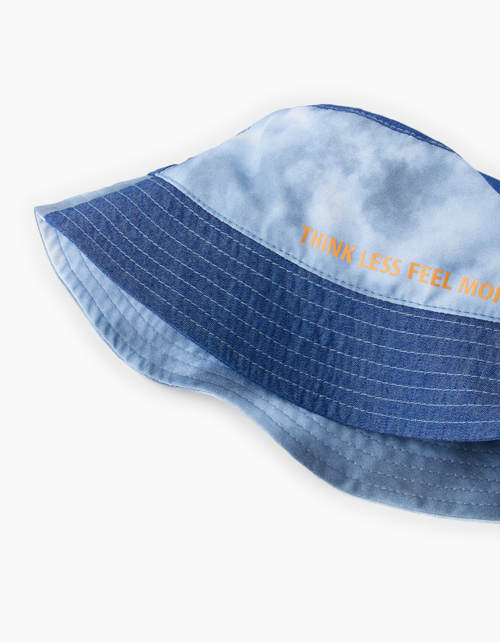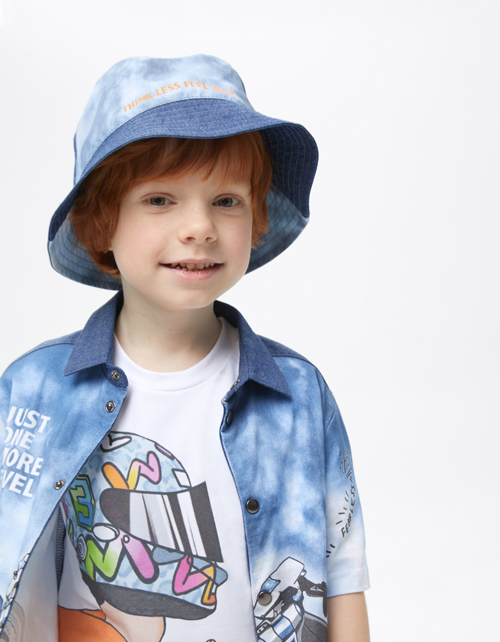 Панама для мальчика. Модель из джинса и сорочечной ткани декорирована принтом