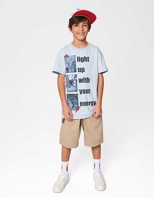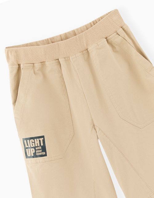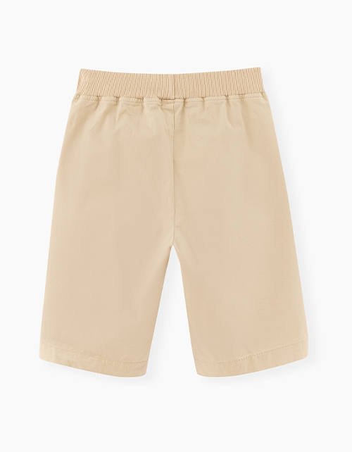 Комфортные летние бежевые шорты для мальчика. Модель на мягком поясе с возможностью регулировки. С боковыми накладными карманами.