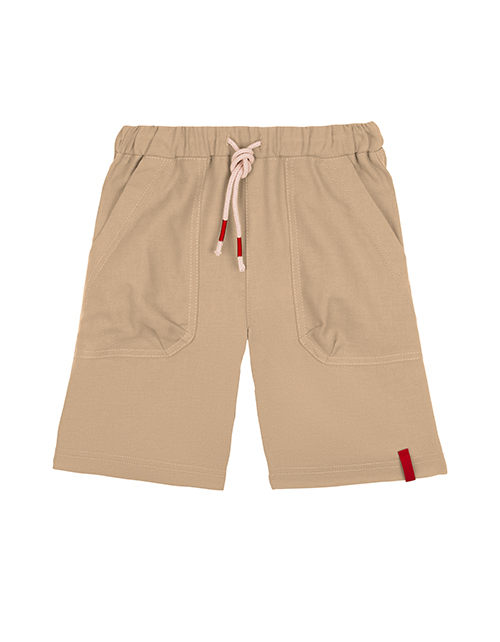 Светло-бежевые шорты для мальчика прямого свободного силуэта. Эластичная лента и декоративный контрастный шнур по поясу. Накладные карманы по переду шорт, манжеты с отворотами. Дизайнерское оформление в стилистике капсулы "Нео сафари".