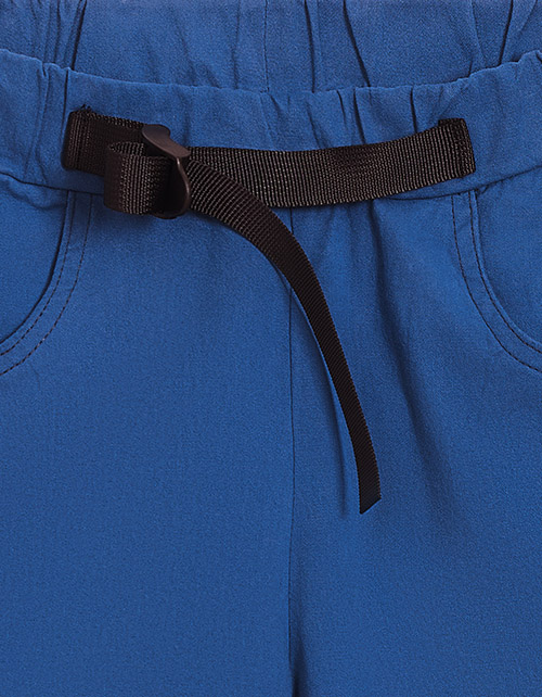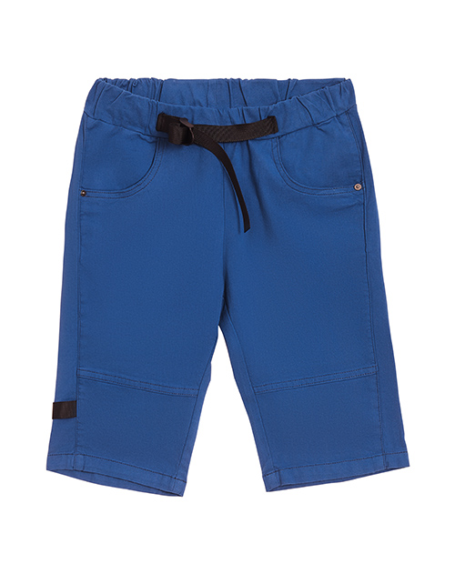 Синие шорты для мальчика на резинке. Функциональная нашивка на пояс с возможностью регулировки талии. Передние и накладной задний карман.