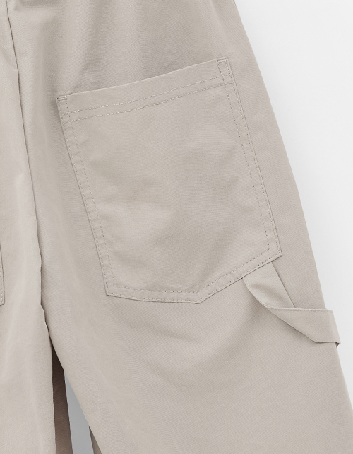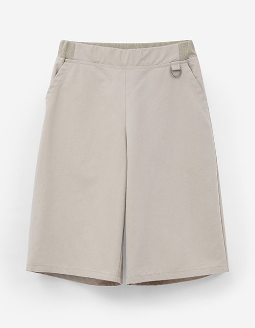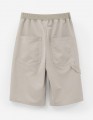 Бермуды из твила в оливковом оттенке и прямом, широком силуэте. Длина ниже колена подчёркивает расслабленный стиль. Комбинированный пояс с мягкой эластичной лентой удобен, боковые и накладные карманы практичны, полукольцо для брелока добавляет акцент.
