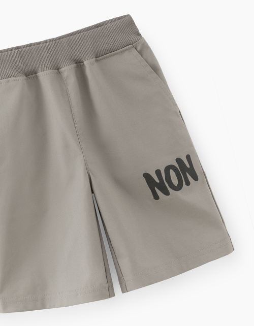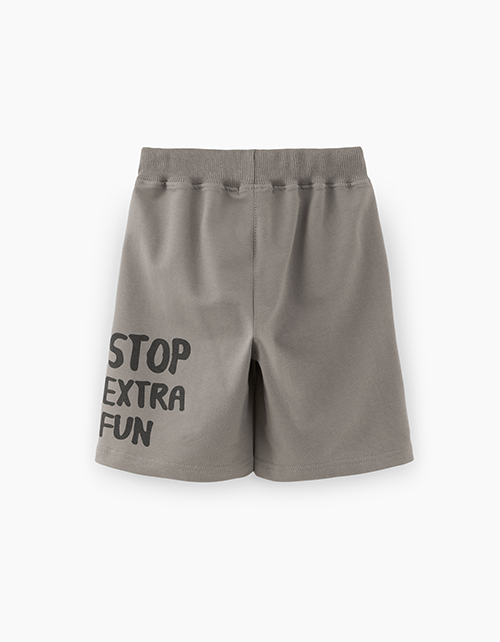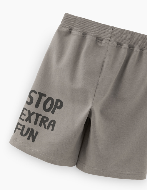 Серо-коричневые шорты для мальчика. Базовая модель прямого силуэта со средней посадкой. Шорты из комбинации материалов: твил и футер, что придаёт максимальное удобство и комфорт. Изделие без застёжки, на мягком поясе.