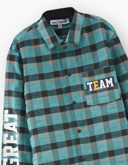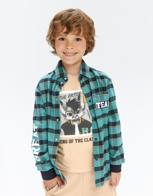 Стильная клетчатая фланелевая рубашка для мальчика. Модель с удобными застежками на кнопках.