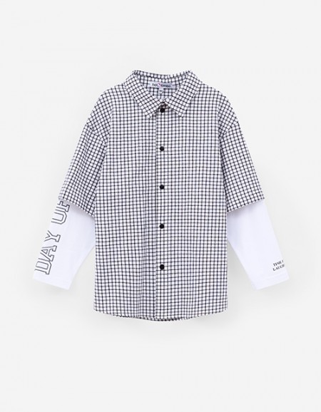 Стильная рубашка в клетку. Модель прямого силуэта. Приспущенная линия плеча. Манжеты из эластичной рибаны. Комфортная застёжка на кнопки. Рубашка из тактильно приятной фланели с контрастной кокеткой декорирована авторскими DTF и трансферными печатями.