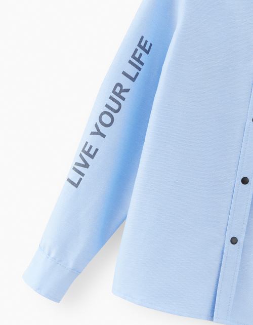 Светло-голубая рубашка прямого силуэта. Модель из сорочечной ткани с застёжкой на кнопки. Оригинальный дизайн позволяет гармонично вписать изделие одновременно в нарядный и базовый гардероб.