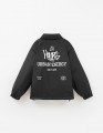 Куртка чёрного цвета на гипоаллергенном синтепоне. Прямой силуэт из матовой плащевой ткани с контрастной нейлоновой подкладкой. Регулировка по низу, прорезные карманы. Кнопки с soft-touch покрытием, декор - термотрансферная плёнка. Рекомендовано от +5.