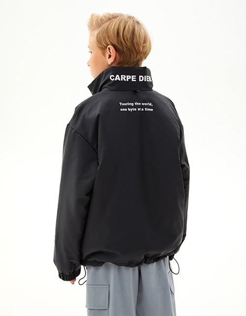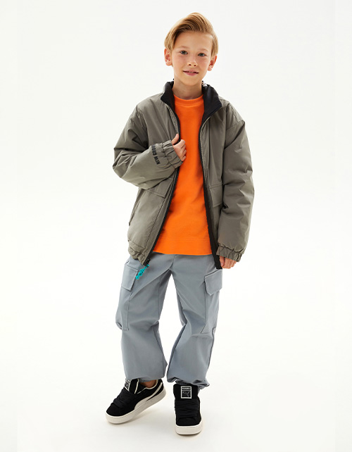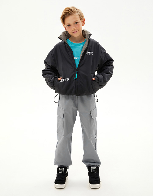 Прямая модель. Регулировка объёма по низу. Манжеты на мягкой резинке. Декоративная подвеска на молнии. Гипоаллергенный утеплитель. Рекомендуемая температура: +5:+15, в зависимости от второго слоя и особенностей ребёнка. Авторский декор.