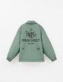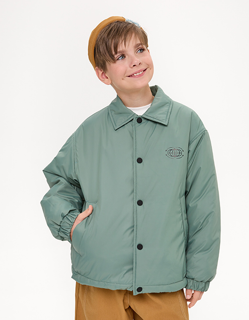 Куртка мятного цвета на гипоаллергенном синтепоне. Прямой силуэт из матовой плащевой ткани с контрастной нейлоновой подкладкой. Регулировка по низу, прорезные карманы. Кнопки с soft-touch покрытием, декор - термотрансферная плёнка. Рекомендовано от +5.