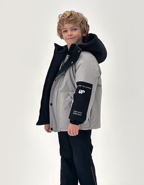 Зимняя двухсторонняя куртка на гипоаллергенном синтепоне для мальчика. Плащёвая матовая ткань с 4-х уровневой степенью защиты. Прямая модель с регулировкой по низу. Капюшон с утяжкой. Ветрозащитная планка. Рекомендуемая температура: до -25 °C.