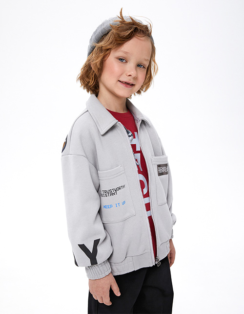 Базовый жакет-рубашка оттенка тёмный лес для мальчика. Модель расслабленного силуэта. Приспущенная линия плеча. Воротник-стойка и манжеты из эластичной рибаны. Комфортная застёжка на кнопки. Рубашка дополнена накладным карманом из твила. Авторский декор.
