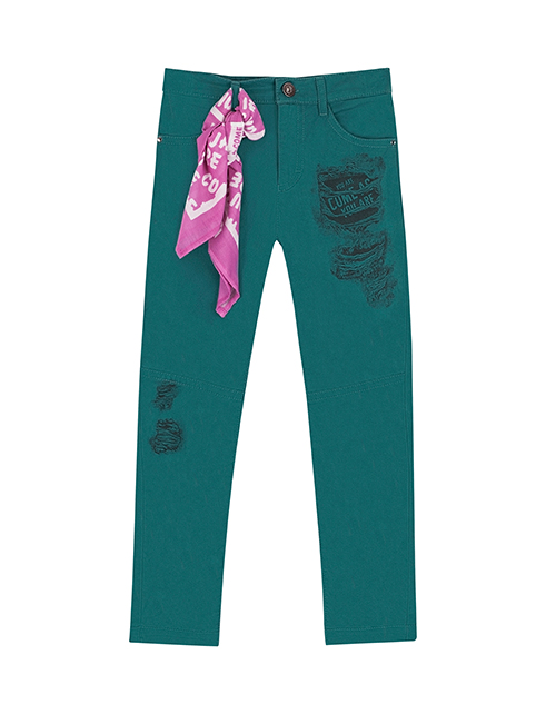 Брюки для мальчика изумрудного цвета. Регулировка пояса на эластичную ленту с петлями и пуговицами. Функциональные карманы. Бандана цвета фуксии крепится к шлевке изделия. Дизайнерское оформление в стилистике капсулы "Дружище Бакс".