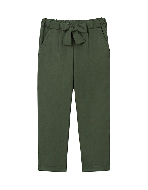 Комфортные свободные брюки - настоящий подарок для Вашей озорницы! Натуральная, прочная, "дышащая", гипоаллергенная ткань с волокнами эвкалипта - то, что нужно непоседливой красавице. Привлекательный силуэт с бантиком на пояске придает изделию особую прел