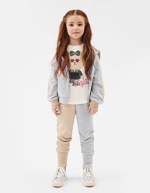 Брюки-джоггеры в стиле колор-блок для девочки. Комфортная модель на эластичном поясе с наклонными боковыми карманами. Брюки декорированы трансферной пленкой.