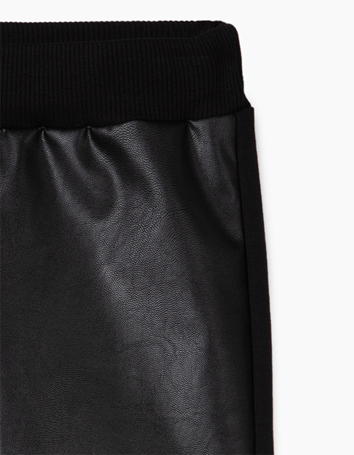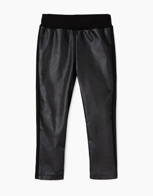 Черные брюки-леггинсы из экокожи и футера. Пояс из рибаны. Универсальное дополнение к любому "верху" из коллекции "Курносики"