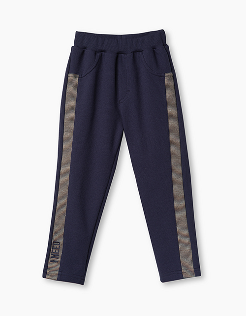 Зауженные брюки из трикотажа под джинс. Накладной карман сзади, имитация карманов спереди. Декорированы лампасами и вышивкой. Комфортный пояс из рибаны.