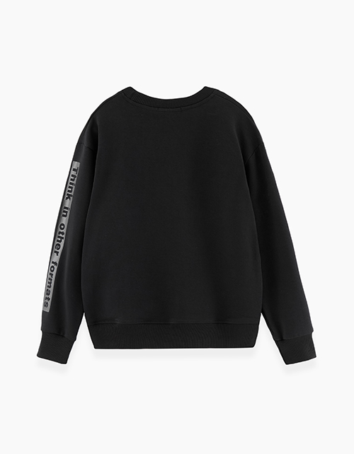 Стильный черный свитшот для мальчика. Модель отлично одойдет для создания повседневных и спортивных образов.