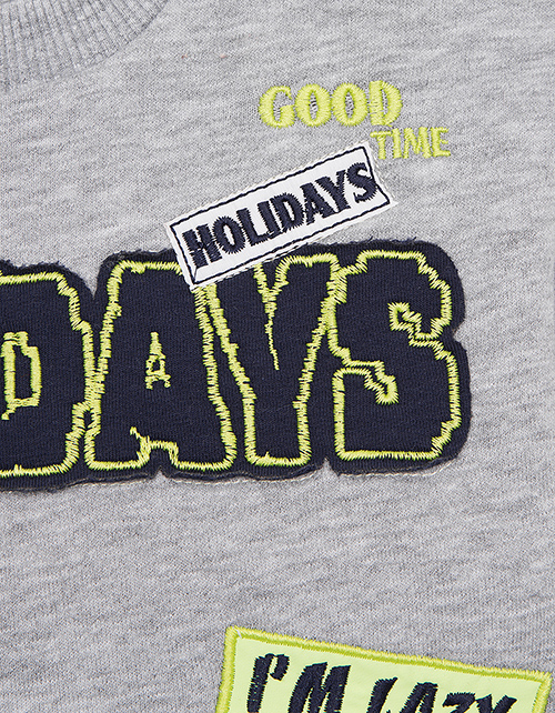 Классный свитшот для самого стильного мальчика! Модель декорирована модными нашивками, яркими надписями и дополнена удобным накладным карманом-кенгуру. Приятный натуральный материал сделает это изделие самым любимым в гардеробе