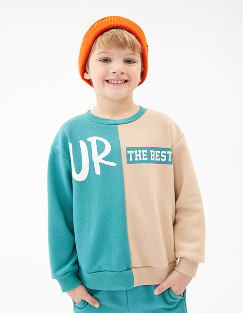Свитшот в стиле колор-блок для мальчика. Стильная повседневная модель декорирована принтом-надписью.