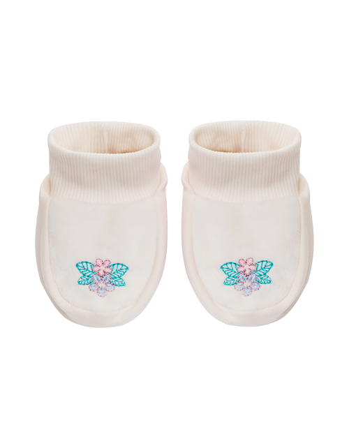 Нежный комплект из комфортных брюк и пинеток воплощает микротренд Kraft-уголок. Вышивка в виде цветочков ручной работы утопает в мягкости ворса вельбоа.Окутайте нежностью ножки вашей любимой малышки!