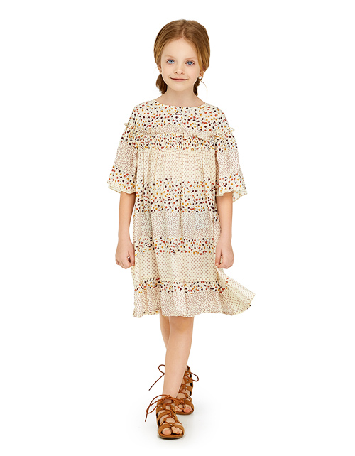 Нежное платье свободного А-силуэта идеально на каждый день. Жарким летом это изделие дарит комфорт благодаря оверсайз силуэту и мягкости материала. Стильный принт в стиле "кантри", лёгкие оборки и складки придают платью очарование