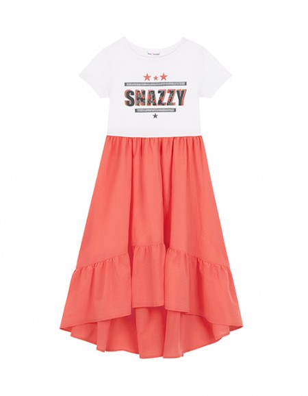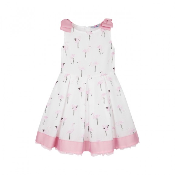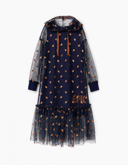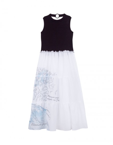 Платье для девочки с юбкой дополнено растительным принтом с птичками, стильной надписью и вышивкой на юбке. Изделие имеет длинный рукав, заниженную отрезную талию и круглый вырез горловины. Ткань футер дарит повышенный комфорт и удобство в носке.