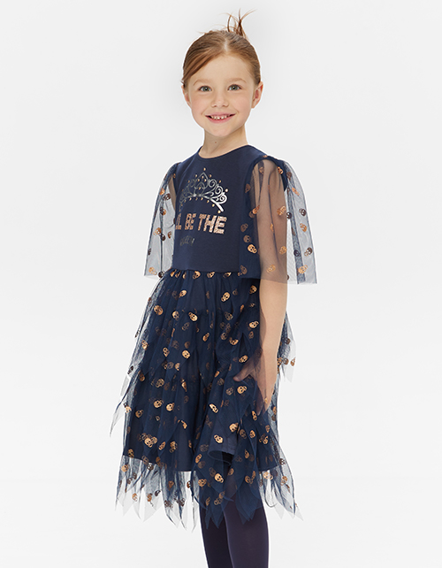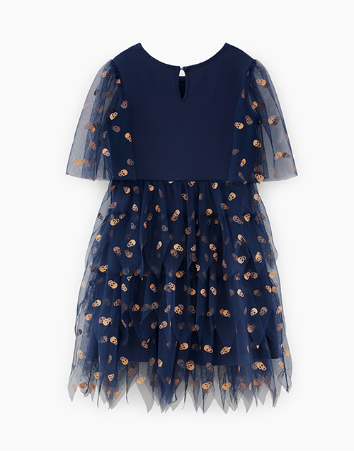 Стильное платье в оттенке темный ирис. Комфортная модель А-образного силуэта с застежкой по спинке на пуговицу. Модель выделяется эффектными рукавами в виде крыльев.
