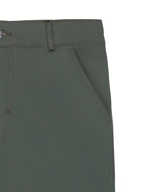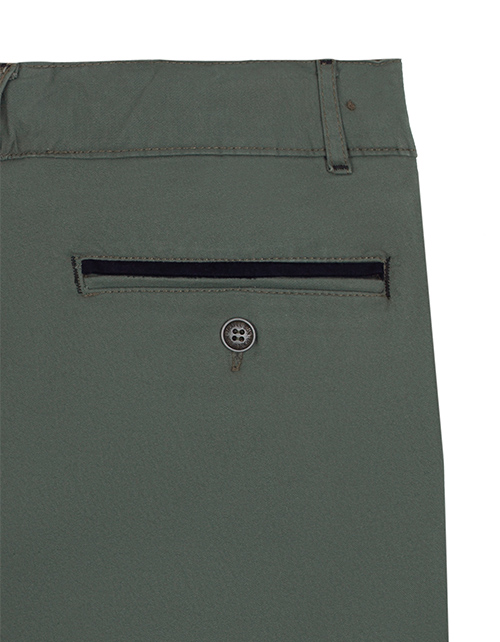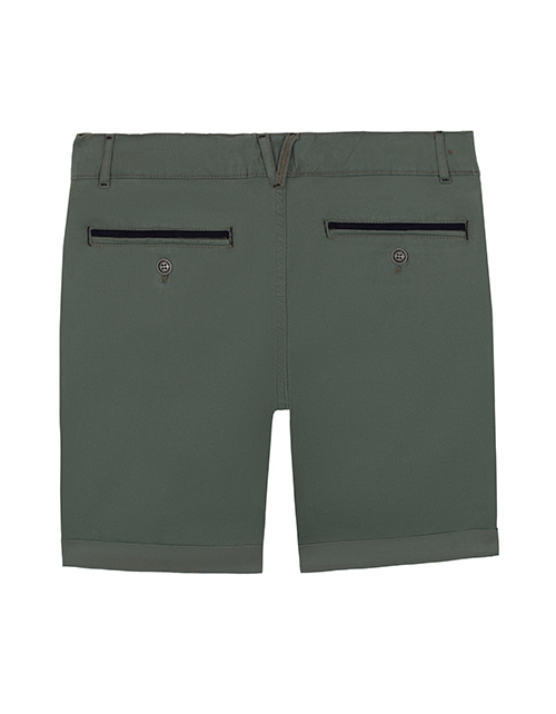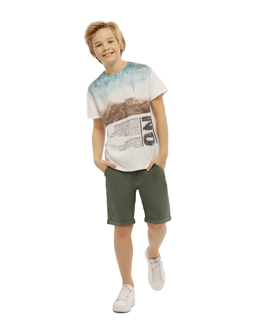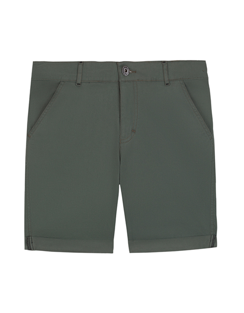 Шорты для мальчика цвета хаки с отворотами по низу. Два прорезных кармана на задней части изделия. Оформление в стилистике капсулы "Городские джунгли".