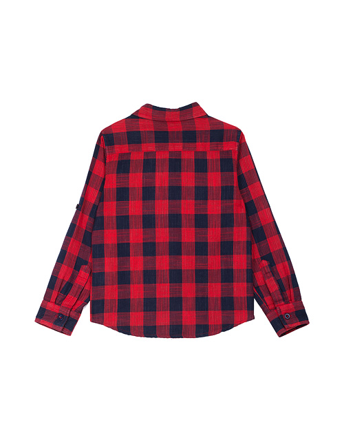 Сорочка для мальчика в крупную клетку имеет свободный силуэт и стильный дизайн. У рубашки двухсторонний эффект, что обеспечивает подклад из контрастной по расцветке ткани. Она дополнена застежкой на пуговицах, накладным карманом и пошита из 100% хлопка.
