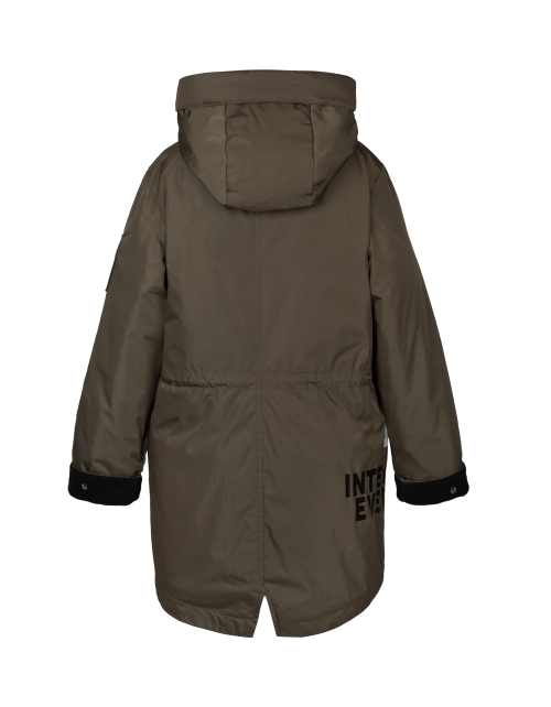 Куртка для мальчика на синтепоне прямого силуэта дополнена капюшоном с затяжками, кулиской на поясе, двумя вместительными карманами, принтом и нашивкой на рукаве. Ткань добби не пропускает влагу и ветер, а подкладка из флиса дарит комфорт в носке.