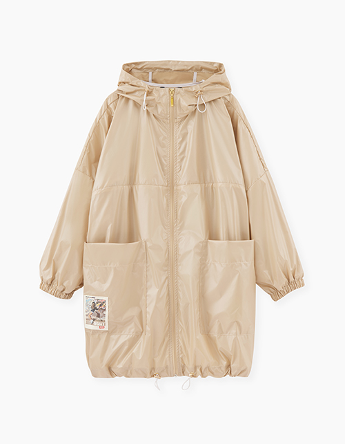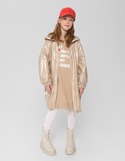 Плащ-пыльник трендового оттенка "Холодный кофе". Комфортная модель OVERSIZE-силуэта с возможностью регулировки по низу. Декорирован нашивкой и цифровой печатью.