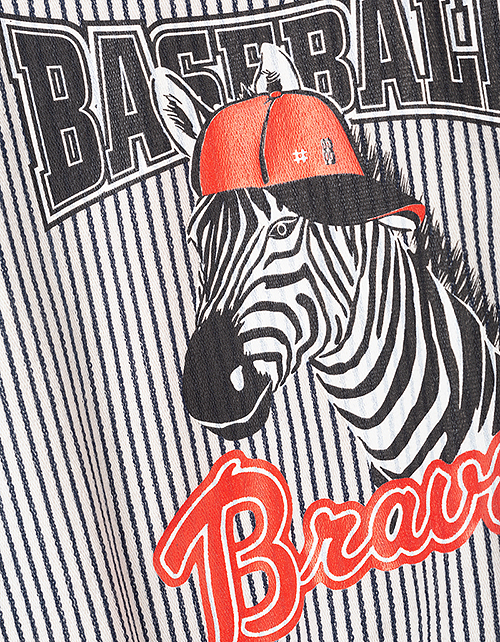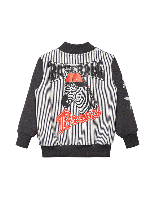 Модный бомбер с изображением веселой зебры-бейсболиста, номера и звездочек на рукавах, станет любимой у Вашего непоседы! В нём очень комфортно, ведь изделие создано из мягкого натурального материала. Актуальный принт полоска сделает ребенка самым стильный